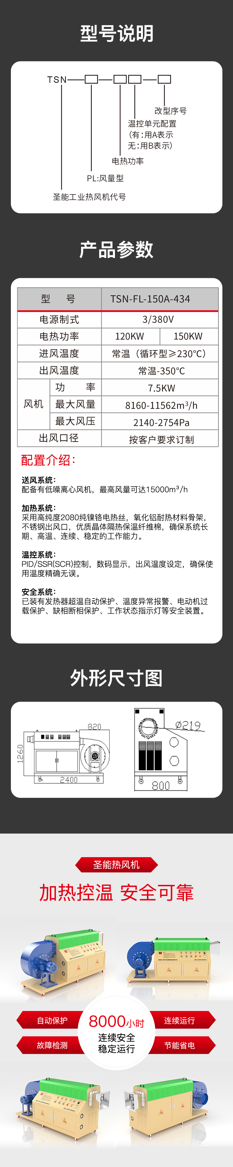 風(fēng)量型熱風(fēng)機(jī)主要由空氣加熱器和離心風(fēng)機(jī)組成??諝饧訜崞骷訜岙a(chǎn)熱散熱,由離心風(fēng)機(jī)將熱量輸出,從而調(diào)節(jié)空間溫度,風(fēng)量型熱風(fēng)機(jī)中加熱元件由2080鎳鉻絲加工成螺旋導(dǎo)管組成,從而發(fā)熱快、溫度效果好、工作風(fēng)量大壓力較低。根據(jù)使用場所可分為:家用風(fēng)量型熱風(fēng)機(jī)和農(nóng)業(yè)用風(fēng)量型熱風(fēng)機(jī)。從而家用和農(nóng)業(yè)用風(fēng)量型熱風(fēng)機(jī)需根據(jù)客戶使用情況來進(jìn)行風(fēng)機(jī)和加熱功率的配比,望請客戶采購時(shí)將現(xiàn)場工況詳細(xì)說明。