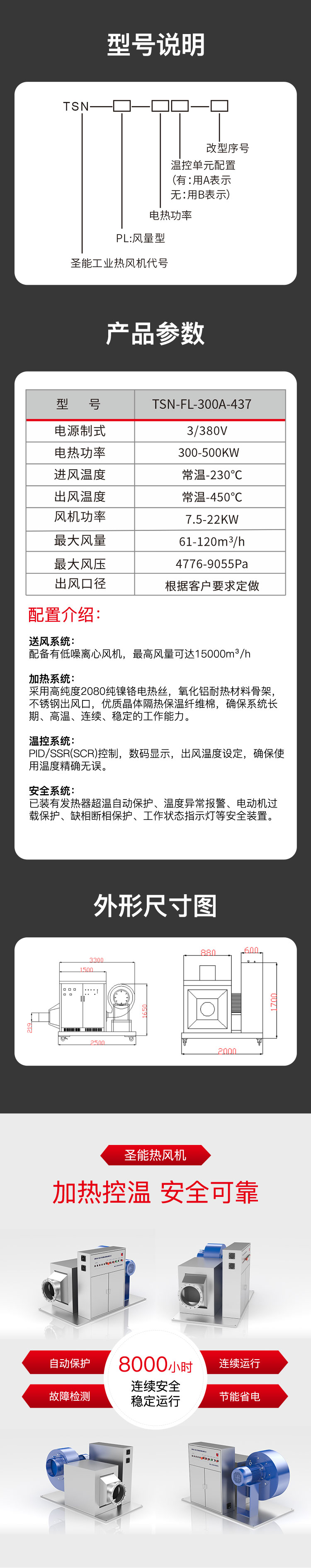 風(fēng)量型熱風(fēng)機(jī)主要由空氣加熱器和離心風(fēng)機(jī)組成??諝饧訜崞骷訜岙a(chǎn)熱散熱,由離心風(fēng)機(jī)將熱量輸出,從而調(diào)節(jié)空間溫度,風(fēng)量型熱風(fēng)機(jī)中加熱元件由2080鎳鉻絲加工成螺旋導(dǎo)管組成,從而發(fā)熱快、溫度效果好、工作風(fēng)量大壓力較低。根據(jù)使用場(chǎng)所可分為:家用風(fēng)量型熱風(fēng)機(jī)和農(nóng)業(yè)用風(fēng)量型熱風(fēng)機(jī)。從而家用和農(nóng)業(yè)用風(fēng)量型熱風(fēng)機(jī)需根據(jù)客戶使用情況來進(jìn)行風(fēng)機(jī)和加熱功率的配比,望請(qǐng)客戶采購時(shí)將現(xiàn)場(chǎng)工況詳細(xì)說明。